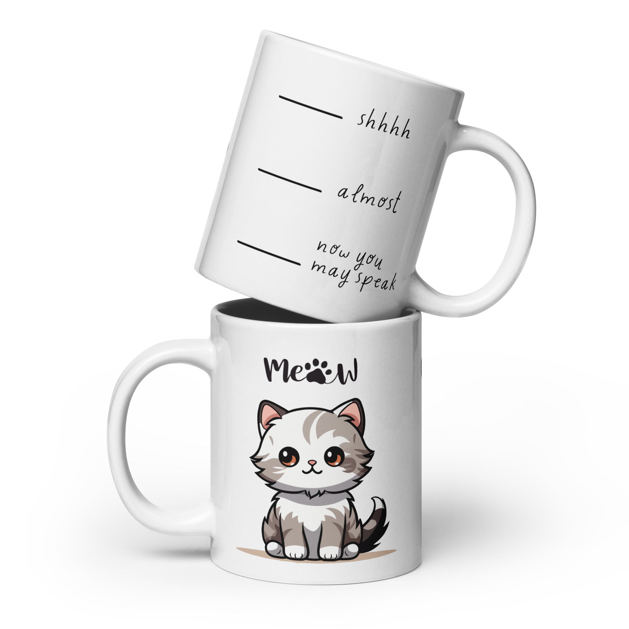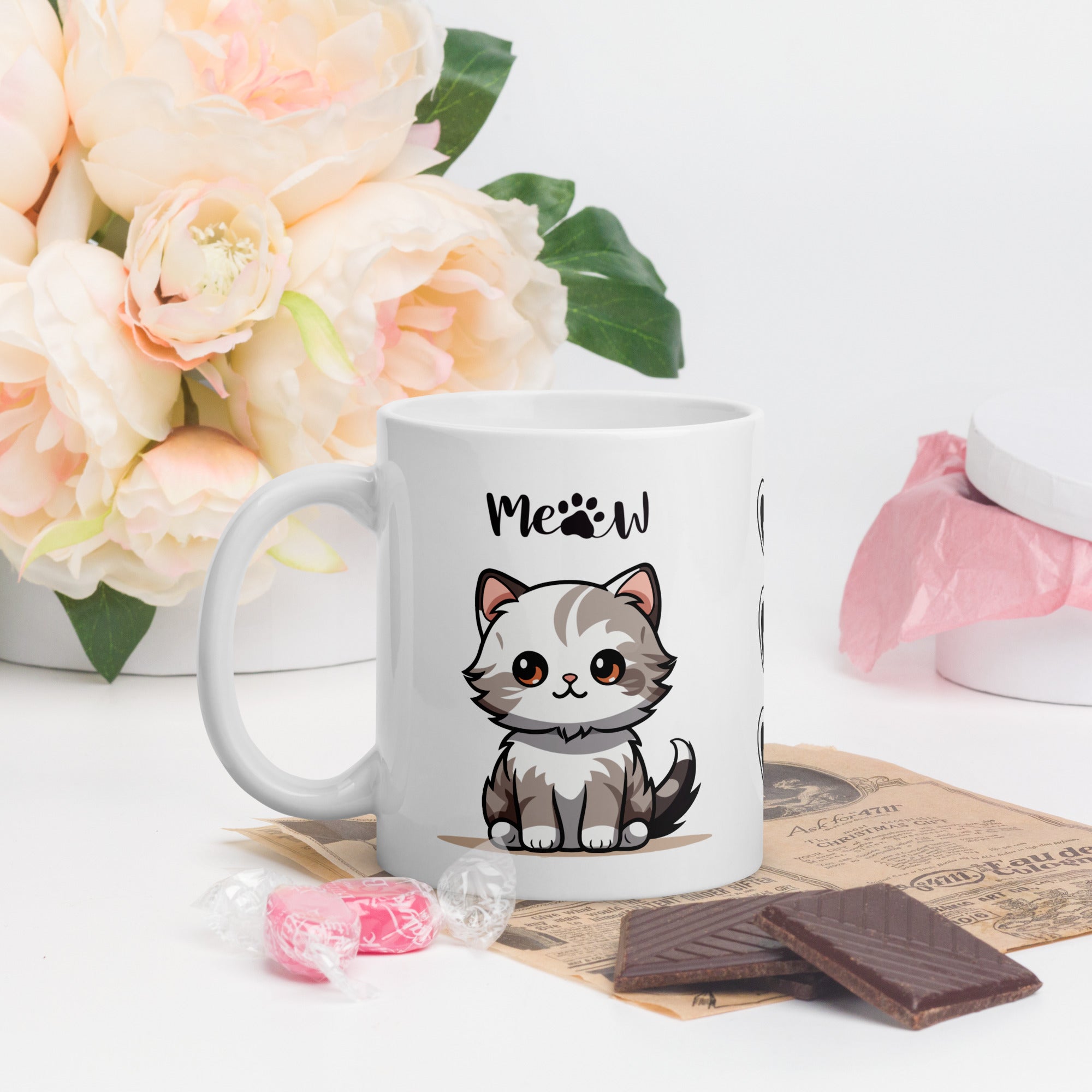 Meow Mug: White Glossy Mug for Cat Lovers (3 sizes)